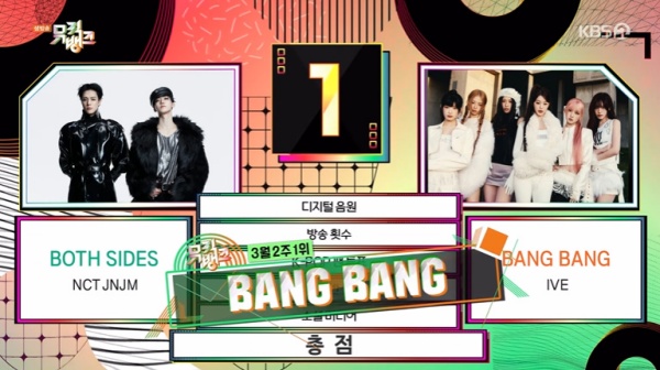 13ÀÏ ¹æ¼ÛµÈ KBS2 '¹ÂÁ÷¹ðÅ©' 1À§ Èĺ¸¿¡´Â NCT JNJM 'º¸½º »çÀÌÁî'(BOTH SIDES), ¾ÆÀ̺ê '¹ð¹ð'(BANG BANG)ÀÌ ¿Ã¶ú´Ù.