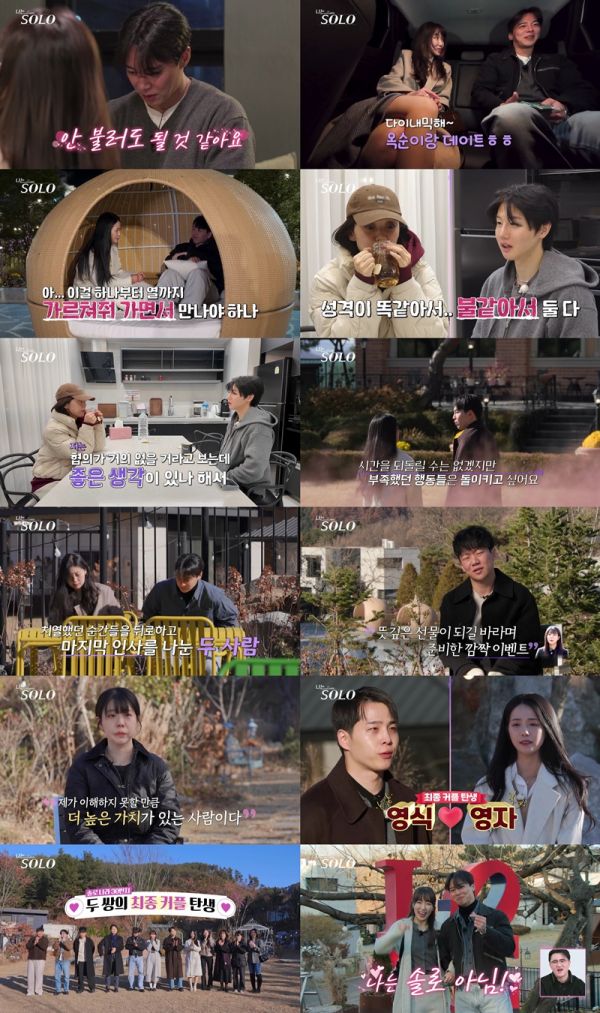 25ÀÏ ¹æ¼ÛµÈ ENA¿Í SBS PlusÀÇ ¸®¾ó µ¥ÀÌÆÃ ÇÁ·Î±×·¥ ¡®³ª´Â SOLO¡¯¿¡¼´Â ¡®¼Ö·Î³ª¶ó 30¹øÁö¡¯ÀÇ ¾ù°¥¸° ŸÀְ̹ú Áø½ÉÀÇ °í¹éÀÌ ±³Â÷ÇÑ 30±â ¡®¿¡°Õ³²-Å×Åä³à ƯÁý¡¯ÀÇ ÃÖÁ¾ ¼±ÅÃÀÌ ±×·ÁÁ³´Ù. ±× °á°ú, ¿µ¼ö-¿Á¼ø, ¿µ½Ä-¿µÀÚ´Â ¡®ÃÖÁ¾ Ä¿Çá¯ÀÌ µÇ¾ú°í, ¿µÈ£-¿µ¼÷¿Í ¿µÃ¶-Á¤¼÷Àº ¼º°Ý Â÷À̸¦ ¶Ù¾î³ÑÁö ¸øÇØ ¼·Î¸¦ ÀÀ¿øÇÏ´Â »çÀÌ·Î ³²¾Ò´Ù.