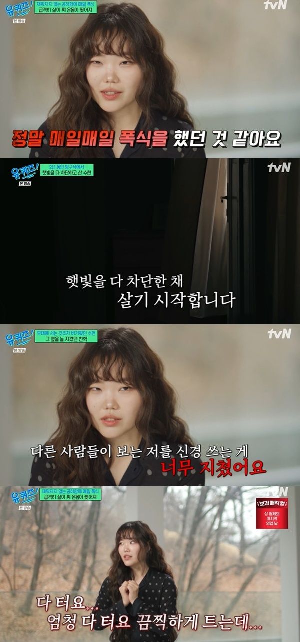 À̼öÇöÀº "À½¾Ç ¹æ¼Û¿¡ °¡¸é »ç¶÷µéÀÌ ´Ù ¸»¶ú±â¿¡ Àú´Â Ç×»ó »ìÀ» »©¾ß ÇÏ´Â »ç¶÷À̾ú´Ù. ±×¶§ Á¤½ÅÀûÀÎ °øÇãÇÔÀ» ä¿öÁÙ ¼ö ÀÖ´Â °Ç À½½ÄÀÌ ÄÇ´Ù"¸ç "¸ÅÀϸÅÀÏ Æø½ÄÀ» Çß´Ù. ¿Â¸öÀÌ ´Ù ÅÕ´Ù. ÀÚÁ¸°¨°ú ÀڽۨÀÌ ¹Ù´ÚÀ» Âï°í »ç¶÷µéÀ» ¸¸³¯ ¼ö ¾ø´Â »óŰ¡ µÆ´Ù. ´ëÀÎ ±âÇÇÁõÀÌ »ý°Ü¼ »ç¶÷µéÀÌ Àú¸¦ ÃÄ´Ùº¸´Â °ÍÀÌ µÎ·Æ´õ¶ó"°í °í¹éÇß´Ù.