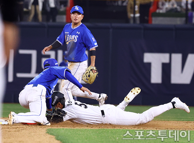 [¼ö¿ø=½ºÆ÷Ã÷Åõµ¥ÀÌ ÆØÇöÁØ ±âÀÚ] 3ÀÏ ¼ö¿øKTÀ§ÁîÆÄÅ©¿¡¼ ¿¸° 2026 KBO¸®±× »ï¼º ¶óÀÌ¿ÂÁî¿Í KT À§ÁîÀÇ °æ±â, 9ȸ¸» ¹«»ç 1·ç ÁÖÀÚ ÀåÁøÇõÀÌ ±è»ó¼ö Ÿ¼® ¶§ µµ·ç¸¦ ½ÃµµÇÏ´Ù ¾Æ¿ôµÇ°í ÀÖ´Ù. 2026.04.03.