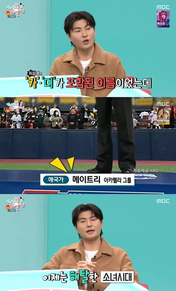 ¶ÇÇÑ Ä«´õ°¡µçÀº "Àü¿¡ 'KBO Çѱ¹ ½Ã¸®Áî' ¾Ö±¹°¡¸¦ ºÒ·¶´Âµ¥ MBC¿¡¼ Á¦ À̸§ÀÌ ¾Æ´Ï°í '¸ÞÀÌÆ®¸®'¶ó´Â ±×·ìÀ» ÀÚ¸·À¸·Î ¾²¼Ì´Ù"¸ç "¾È ±×·¡µµ ³î¸²´çÇϴµ¥"¶ó°í ÇѲ¯ ¼¿îÇÔÀ» µå·¯³Â´Ù.
